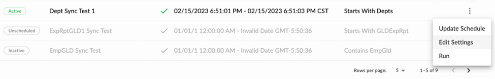 On the Manage Data Interchanges page, click the three-dot menu icon and select Edit Settings from the drop-down.