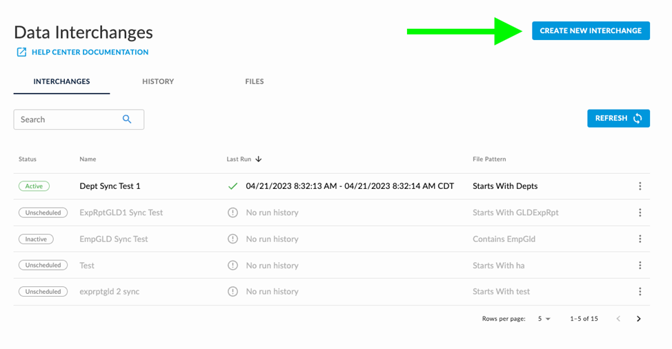 - Click the ‘Create New Interchange’ button at the top right of the screen: