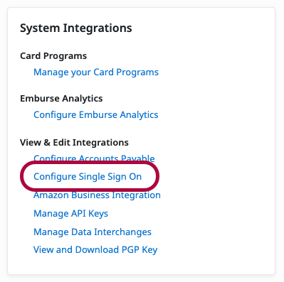 1. On your Emburse Professional homepage, click Configuration. Then, click Configure Single Sign On.
