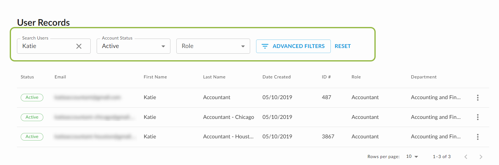 2. On the Manage Users page, use the search bar to find a specific user, or use advanced filters to find a group of users.