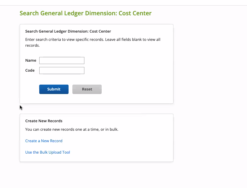 We’ve made a small but mighty improvement to the General Ledger Dimension (GLD) search. A search for Name, Code, or Data (an optional field) on the below page will now return any result containing the search query as a substring.