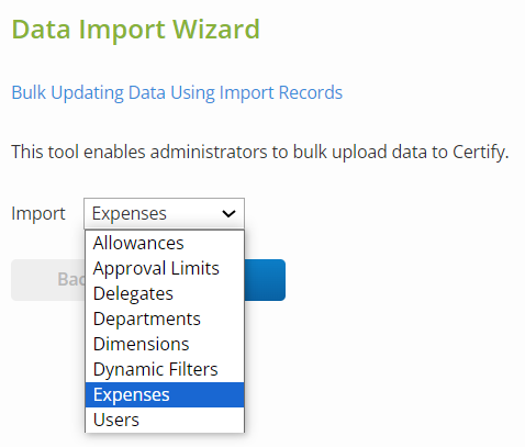 Administrators can bulk import expenses to a user’s wallet or an expense report using the Import Records tool.