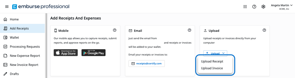 Submitters can access the new OCR service from either the Wallet or the Add Receipts page.
