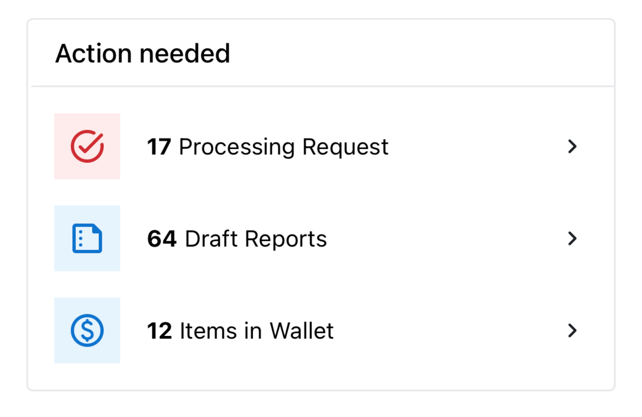 - Action Needed dashboard: See items requiring attention immediately upon login