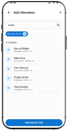 A simplified attendee search allows users to capture meal attendees before the meeting ends.