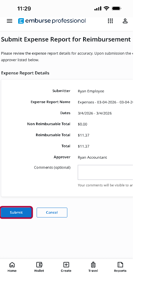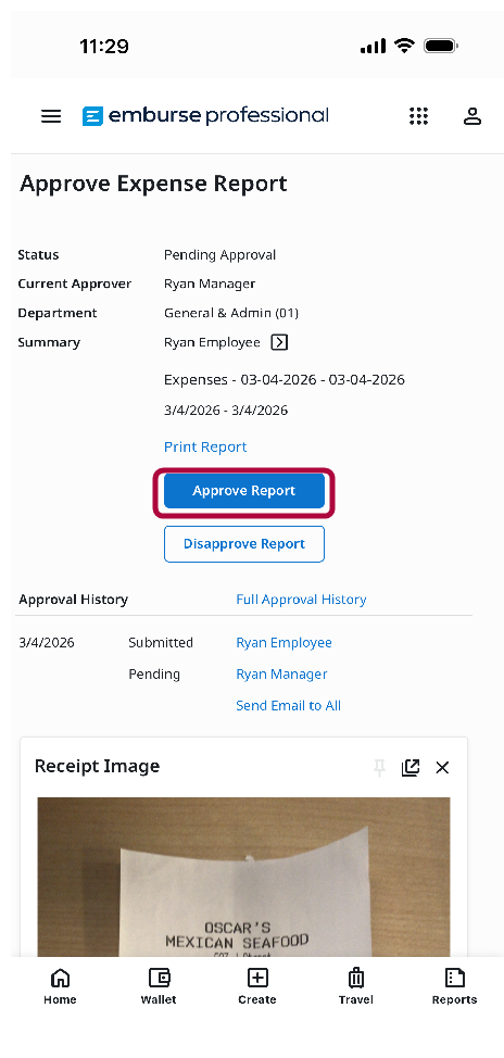- Una vez que hayas terminado de revisar todos los gastos, toca Aprobar Informe.